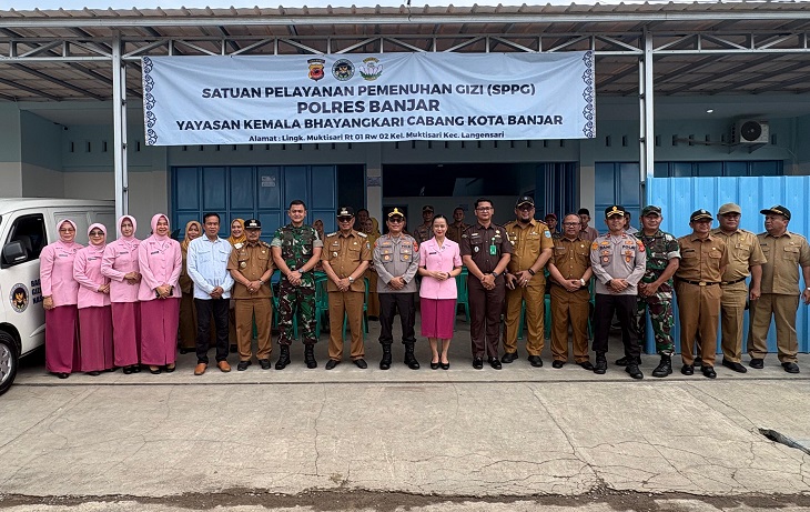 BANJAR, JurnalMedia – Dapur Satuan Pelayanan Pemenuhan Gizi (SPPG) Kemala Bhayangkari Polres Banjar resmi diresmikan pada Senin (29/9/2025) di Kecamatan Langensari, Kota Banjar. Peresmian ini dihadiri Wali Kota dan Wakil Wali Kota Banjar, Kapolres Banjar, Dandim 0613, serta sejumlah tokoh masyarakat. Kehadiran dapur sehat tersebut menandai sinergi antara pemerintah daerah, kepolisian, dan Bhayangkari dalam memperkuat ketahanan pangan serta meningkatkan kesehatan masyarakat.