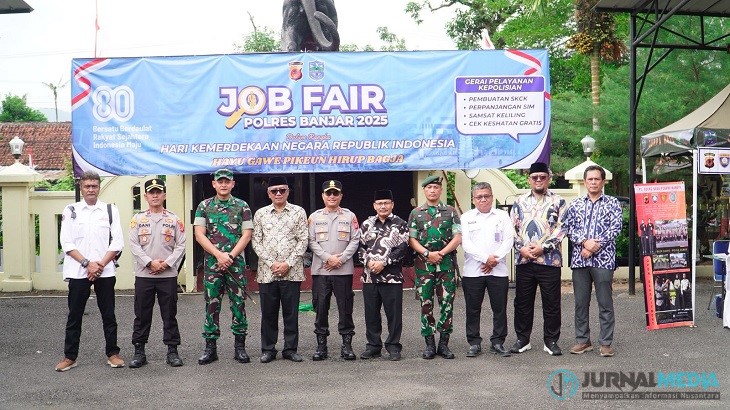BANJAR, JurnalMedia – Dalam rangka memeriahkan Hari Ulang Tahun ke-80 Republik Indonesia, Polres Banjar, Polda Jabar menunjukkan inovasi baru dengan menyelenggarakan Job Fair 2025 di Lapangan Apel Mapolres Banjar, Kamis 7 Agustus 2025. Mengusung tema khas lokal yang sarat makna, “Hayu Gawe Pikeun Hirup Bagja”, kegiatan ini menjadi wujud nyata komitmen Polri hadir lebih dekat dan lebih bermanfaat bagi masyarakat.
